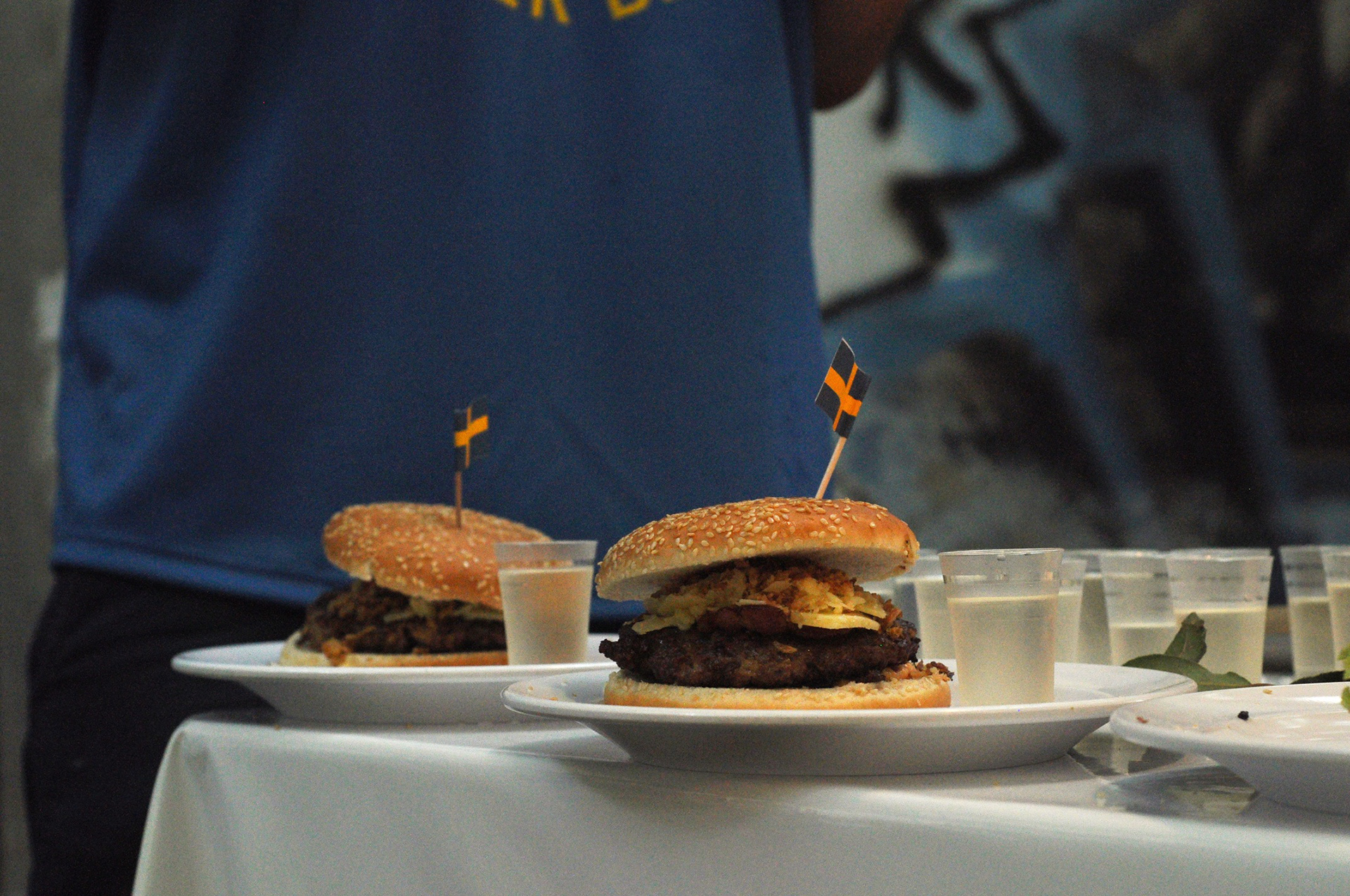 event support: custom burger battle themed pins