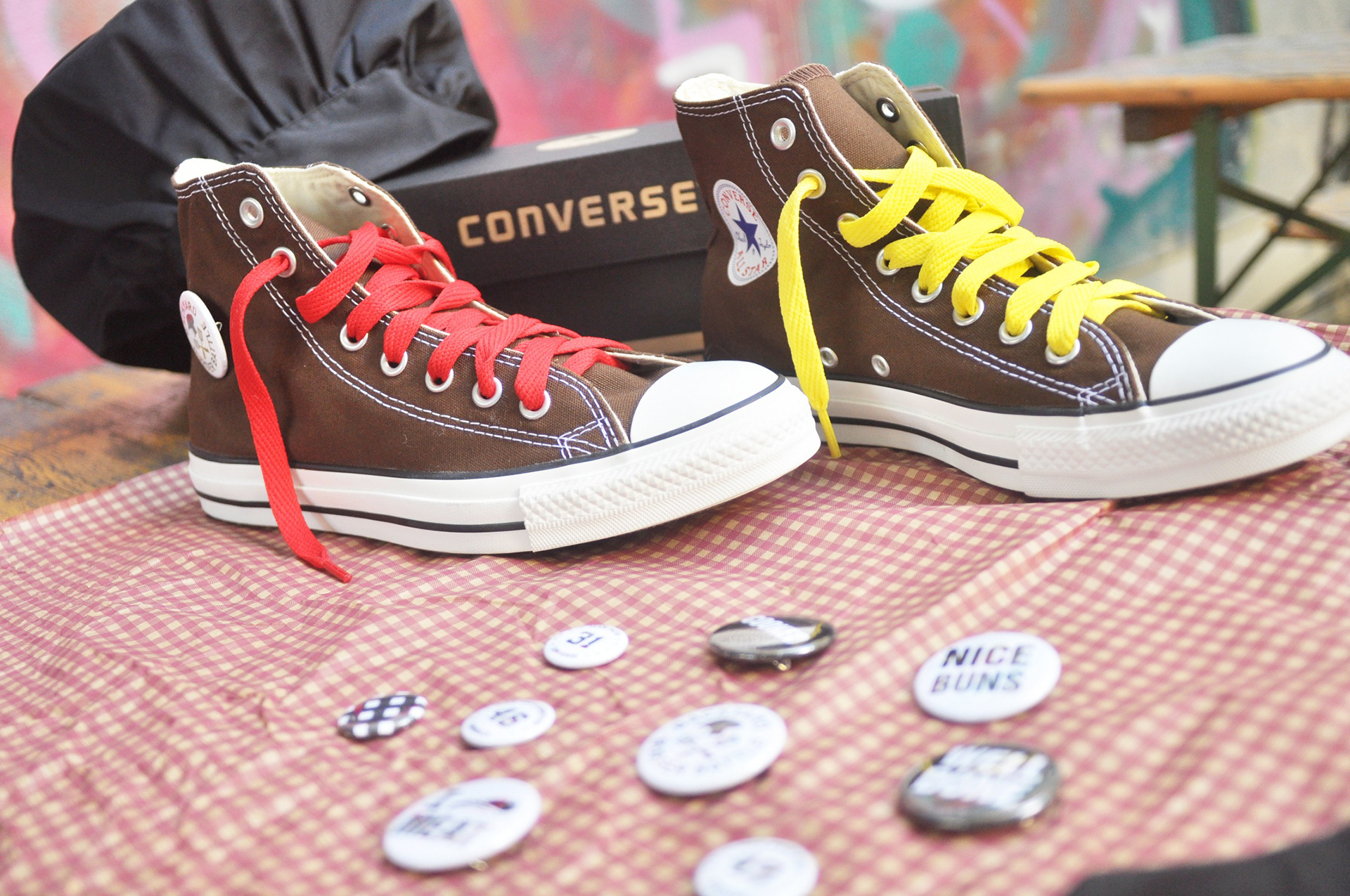 event support: key influencers give-away; brown chucks with "ketchup" and "mustard" laces